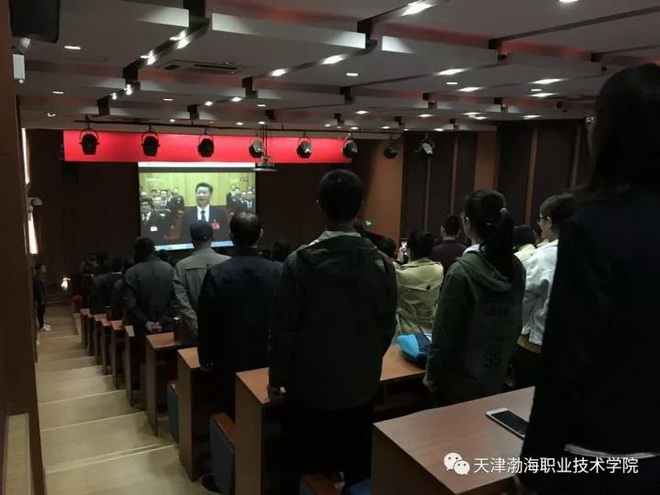 中国共产党第十九次全国代表大会10月18日上午9:00在人民大会堂隆重开幕,学院党委高度重视,周密部署,细致安排,组织党政领导班子、广大师生、离退休老干部认真收听收看开幕会实况,全体师生员工热切关注党的十九大。观看报告会结束后,学院师生热烈讨论,激情彭拜,纷纷表示要积极学习党的十九大报告会精神。