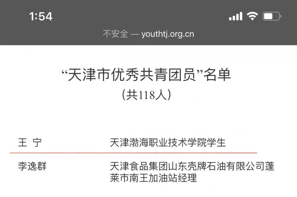 2020年的“五四”表彰中,天津渤海职业技术学院信息工程学院王宁同学作为全集团唯一一名“天津市优秀共青团员”候选人入围团市委评选,并最终顺利获得此项殊荣。王宁,男,中共预备党员,信息工程学院软件技术173班学生,曾任信息工程学院团总支副书记。