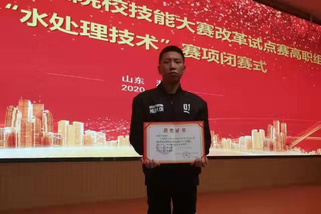 11月26日-29日,由教育部、国家发展和改革委员会、人力资源和社会保障部等主办的2020年全国职业院校技能大赛改革试点赛高职组“水处理技术”赛项在山东科技职业学院举行。全国29个省市环保类高校的29名优秀选手参加比赛,学院环境与化工学院环境工程技术191班魏志远同学代表天津市参加了此次全国比赛,比赛历经2天12个小时,魏志远同学沉着冷静地应对各种问题,高质量完成了四个项目的比赛,最终荣获高职组水处理赛项个人二等奖,为天津市代表队和渤海职业技术学院争得荣誉。