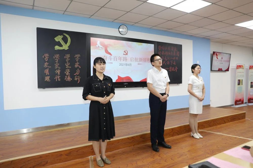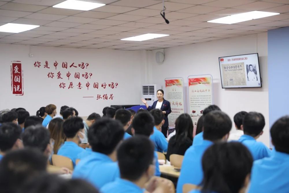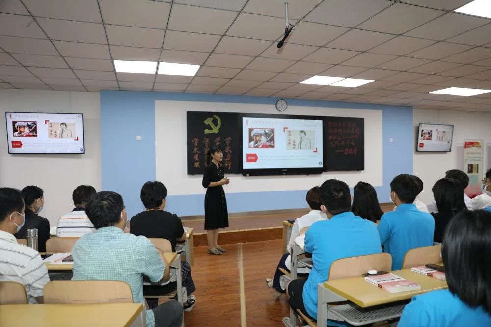 课堂上风云激荡,一个个隽永的红色故事流淌而出、叩击人心。老师们精心准备,选取了党的百年历程各个阶段中的感人红色故事,反复排练打磨,精益求精,以小切口呈现大主题,用富有感染力的声音,或激情昂扬、或铿锵有力、或娓娓道来,精彩讲述一个个鲜活的红色故事。伴随着视频声画,一个个党史人物,仿佛穿越百年,来到了同学们面前,回到那一段峥嵘岁月,再现了一个个光辉的英雄形象,展现了共产党人不忘初心、牢记使命的责任担当。