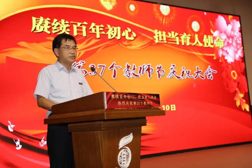 庆祝大会上,学院党委书记王义龙做了讲话。他指出,学院的每一个进步、每一个成绩,都凝结着学院教师和教育工作者的辛勤汗水。他对全体教职员工提出四点希望:一要立德,教师是人类灵魂的工程师,师德是教师最重要的素质,大家要以优秀教师为楷模,坚持立德立己、以身立教,做有理想信念的好老师;二要好学,教师是知识的传播者、智力的开发者,大家要积极在业务上当强将,教学上创一流,做有扎实学识的好老师;三要关爱,要对学生充满爱心,努力成为学生爱戴的老师,群众满意的园丁,社会称颂的楷模,做有仁爱之心的好老师;四要有责,大家要充分意识到自己肩负的重大使命和历史责任,以对学生高度负责的精神,将爱心与责任彰显于教育教学的每个细节,做有道德情操的好老师。他强调,在“十四五”开局之年,在学院“双高计划”建设关键之年,广大教师要牢记为党育人,为国育才使命,继续发扬成绩,以更饱满的精神,务实的工作作风,不断书写渤海教育事业的新篇章!
